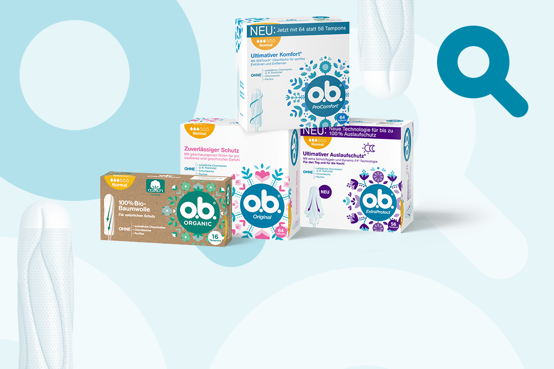 Az o.b.® tamponokat több mint 70 évvel ezelőtt Dr. Judith Esser és két munkatársa fejlesztette ki. Dr. Esser nemcsak nőgyógyász volt, hanem szenvedélyes úszó is. Az 1940-es években azonban csak egészségügyi betétek voltak kaphatók a német piacon, ezért alternatívát keresett, hogy menstruációja alatt is sportolhasson. A név összefoglalja az ötletét: az o.b.® a " betét nélkül" rövidítése. Azért választották ezt a rövidítést, hogy termékük neve diszkrét, modern és elegáns legyen.